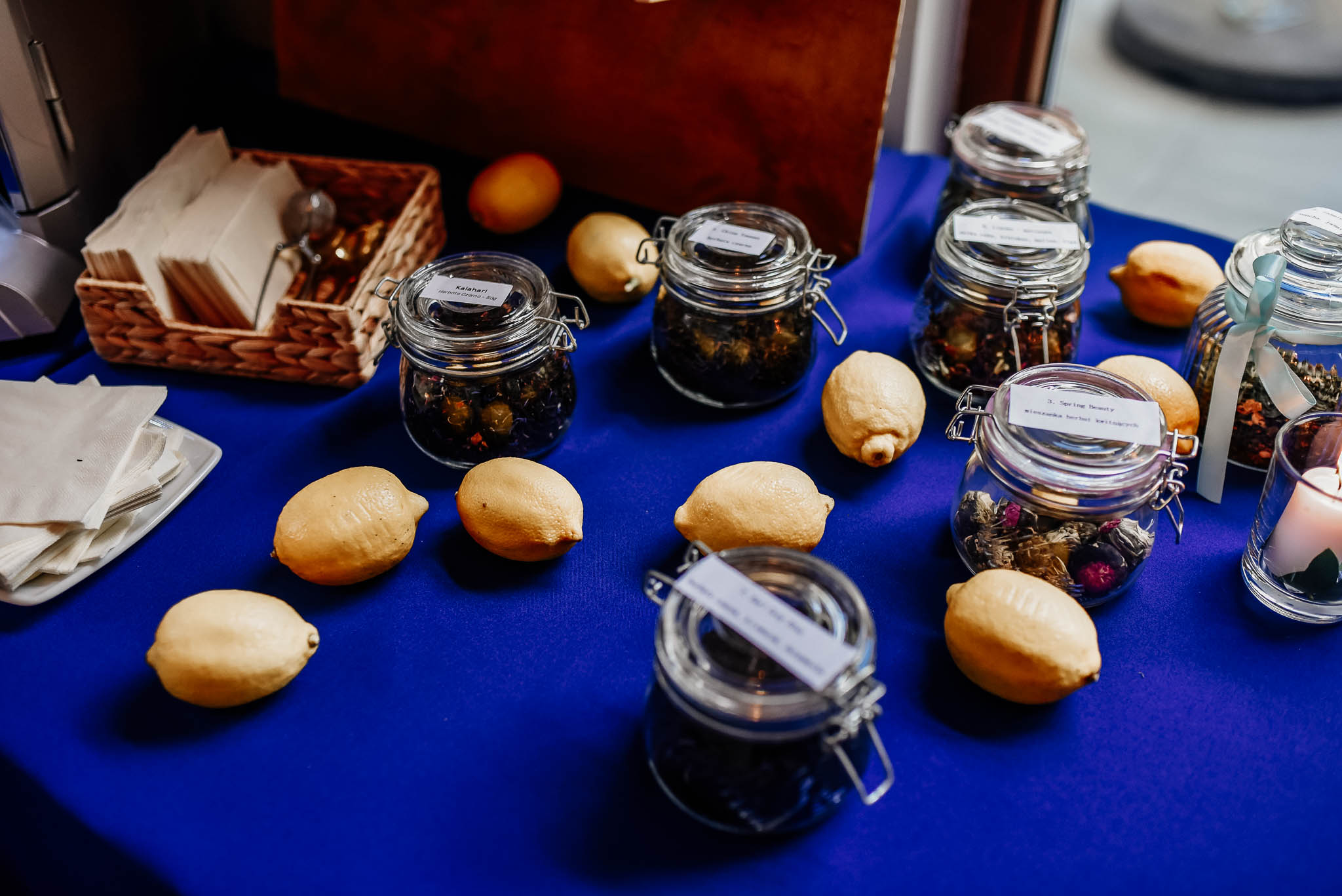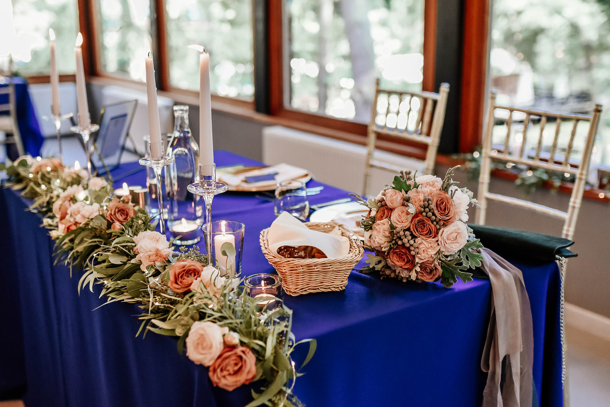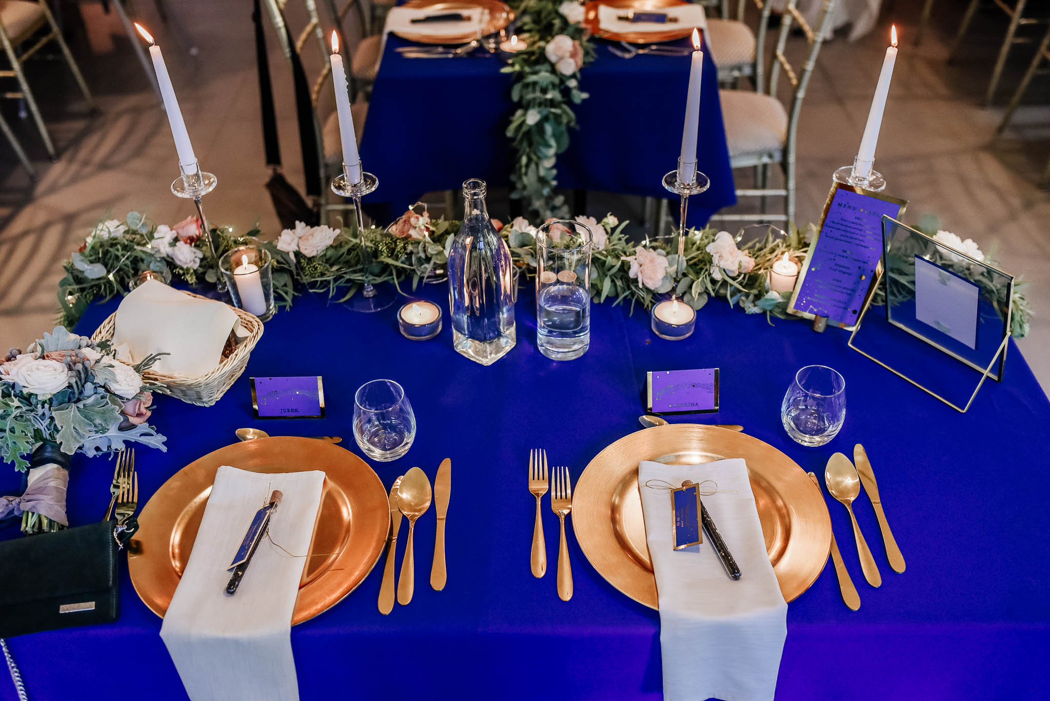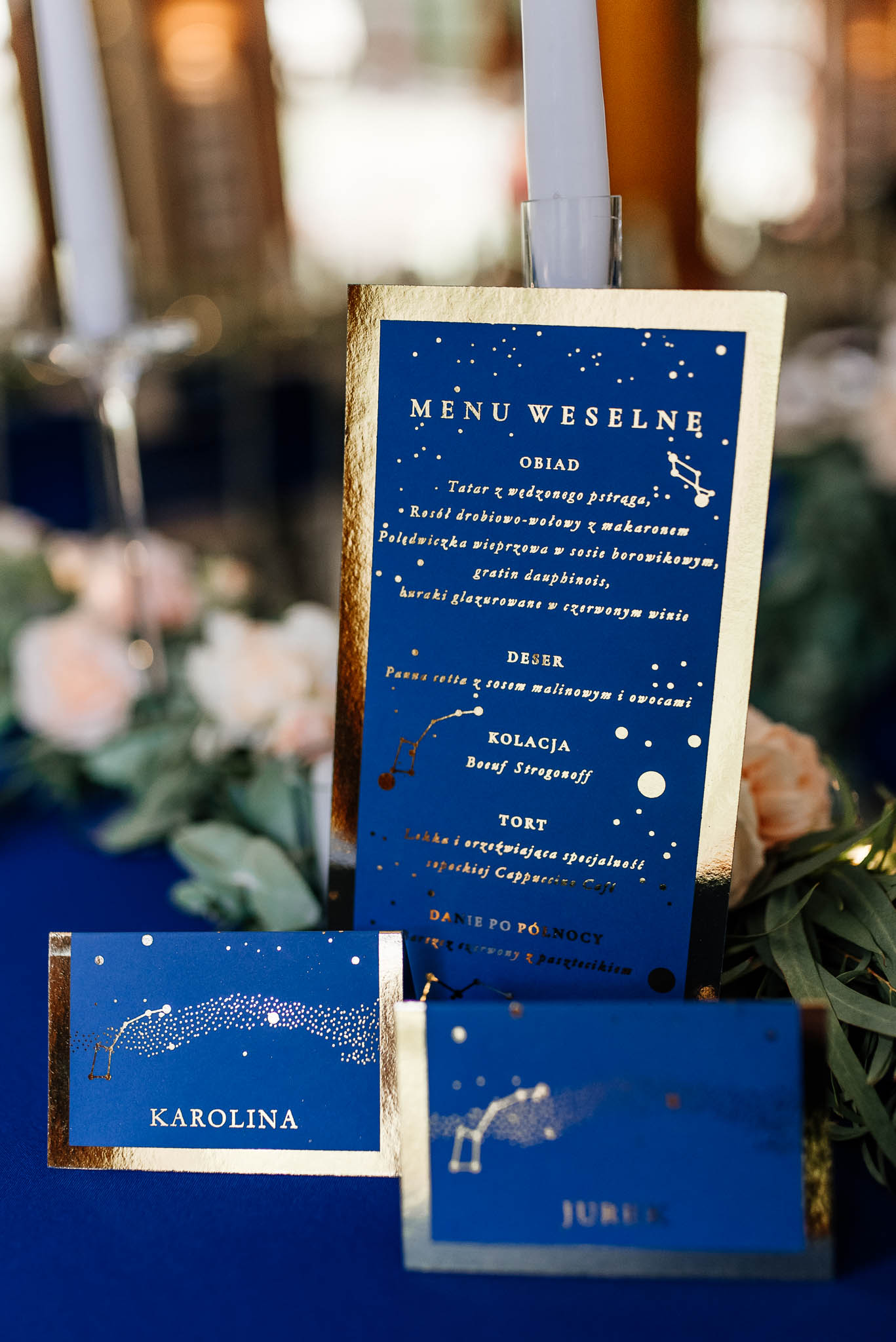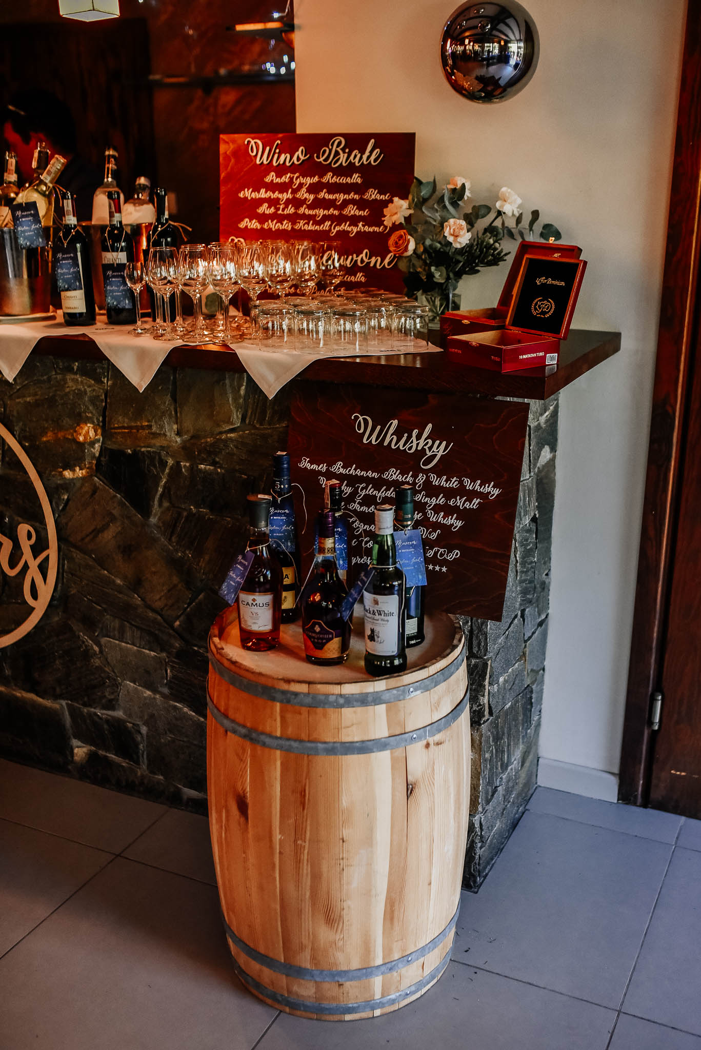 Dekoracje sali i stołów: Narcyz Pracownia Florystyczna (kwiaty) i Bukiety & Bankiety (pozostałe elementy)