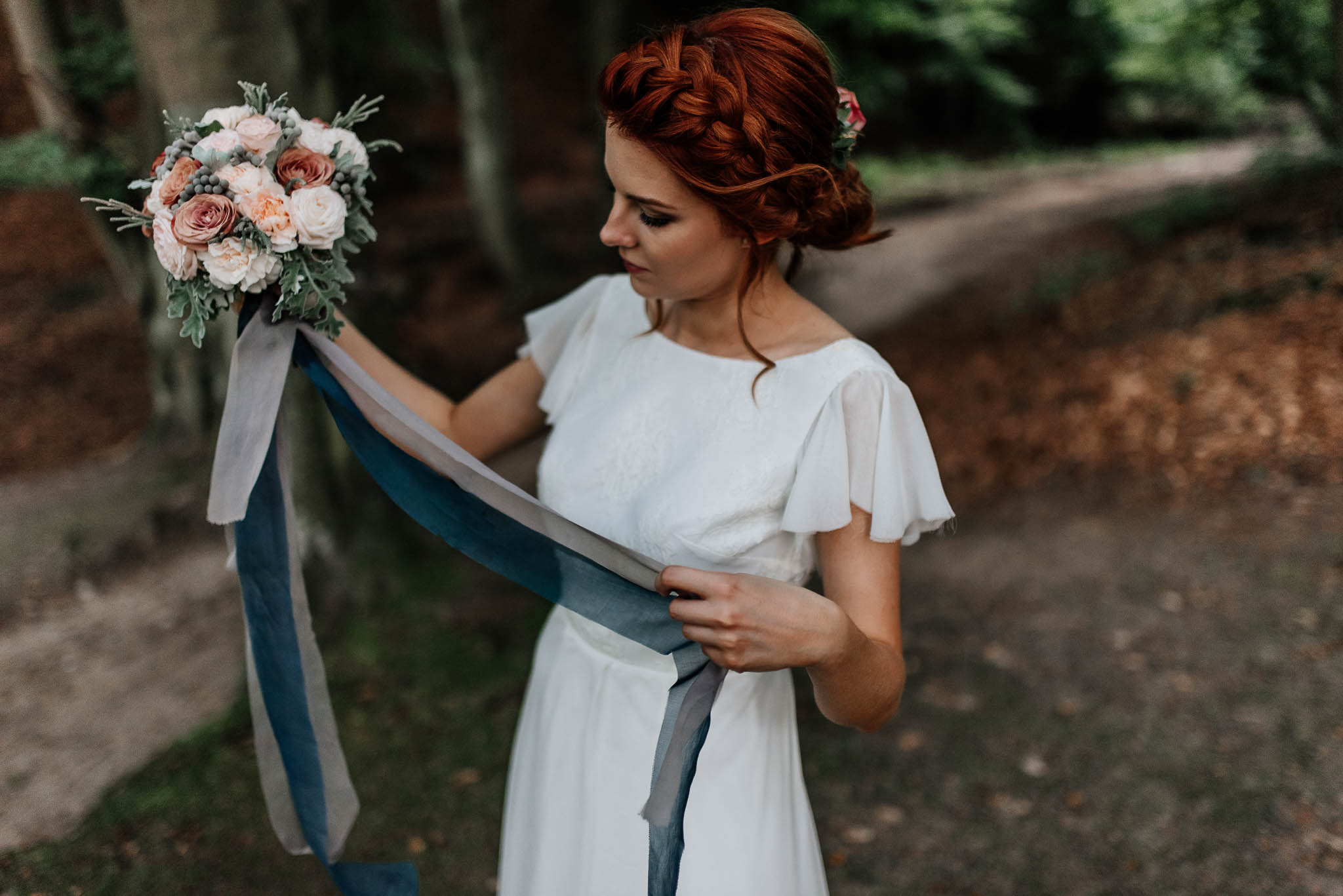 Akcesoria Pani Młodej: Przepiękne wstążki od September Atelier, które zawiązałam przy bukiecie. Chwalę tym bardziej, że znalazłam tę firmę (z polecenia Warsaw Poet) na instagramie tydzień przed wyjazdowym weselem, więc czasu na wysyłkę było baaardzo mało. Dzięki mobilizacji pań z September Atelier wszystko dotarło na czas.