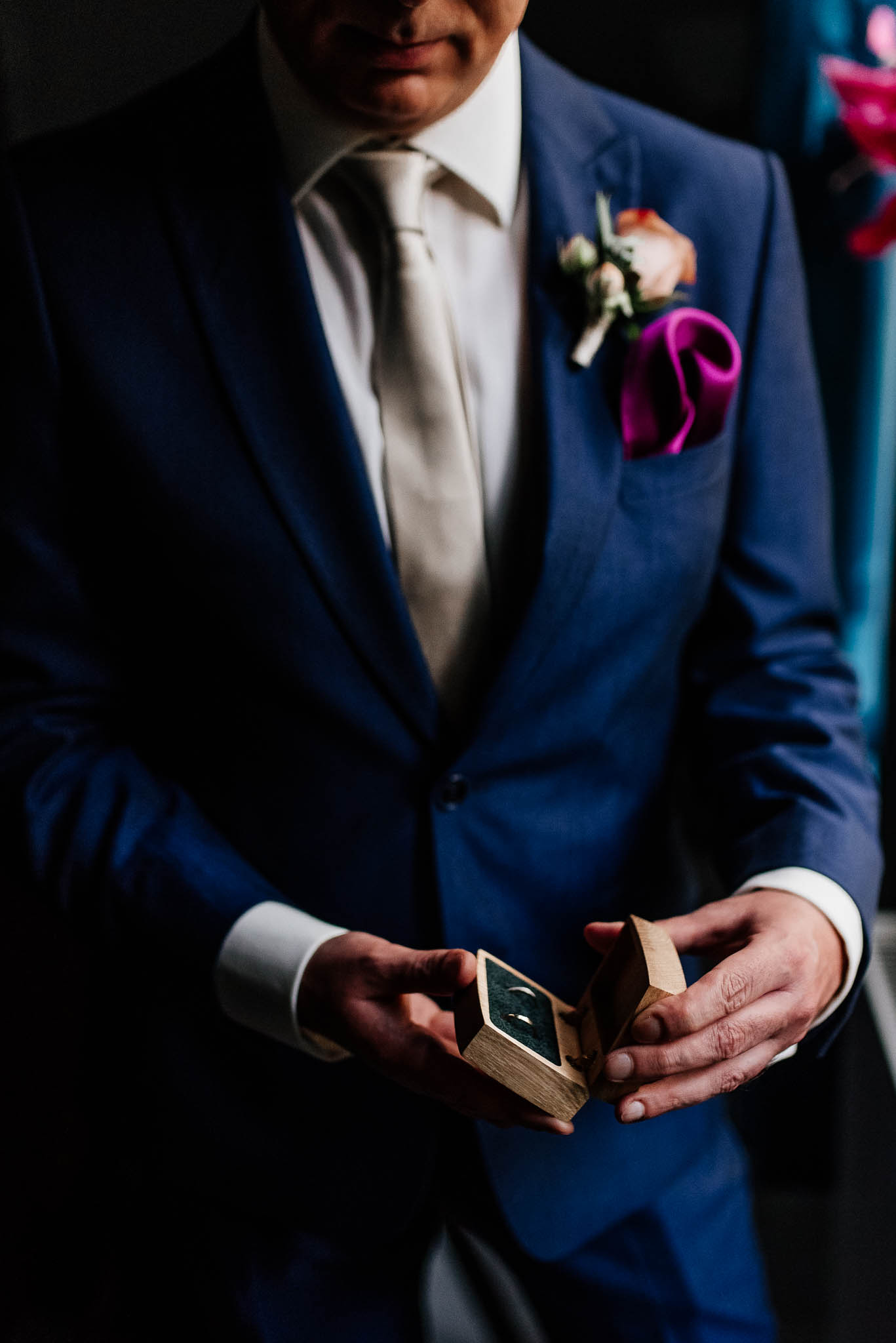Dodatki: Chusteczka w poszetce Giacomo Conti, kwiatek w butonierce od Narcyza